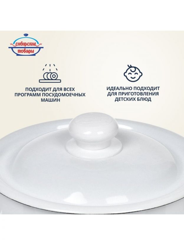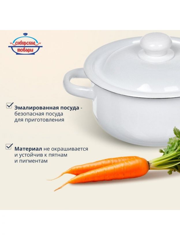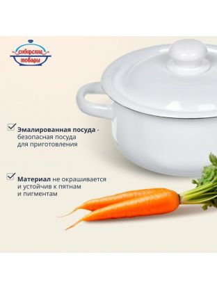 Эмалированная кастрюля 1,5 л «Сибирские товары» — практичное решение для кухни, дачи и подарка: долговечная сталь, универсальный размер, легкий уход.