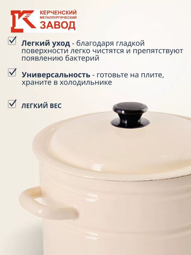 Кастрюля эмалированная 12 л Керченский завод — идеальный выбор для больших семей: варите суп, компот, пельмени, кашу или пюре без хлопот и пригорания.