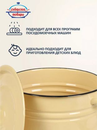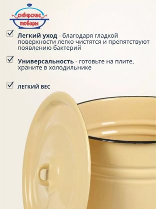 В отличие от алюминиевых и пластиковых аналогов, эмалированная сталь сохраняет вкус продуктов, не выделяет вредных веществ при нагреве. Кастрюля не подходит для индукционных плит, но отлично работает на газовых, электрических и стеклокерамических плитах. Как использовать кастрюлю для варки компота или супа? Просто залейте ингредиенты, поставьте на плиту — вместимость позволяет готовить сразу на несколько дней или для большой компании.