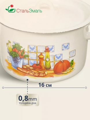 Кастрюля эмалированная сталь, 2.9 л, крышка сталь, цилиндрическая, СтальЭмаль, 1с16с/1, в ассортименте, индукция