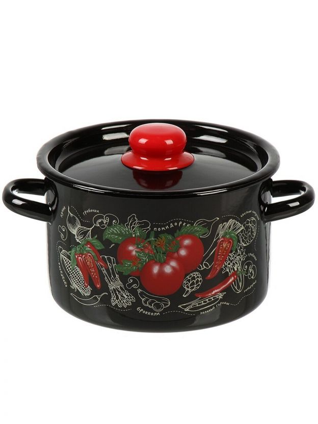 Кастрюля эмалированная СтальЭмаль «Помидорки», 2.9 л: универсальное решение для индукции, газа и стеклокерамики. Готовьте дома и на даче без хлопот!