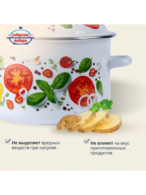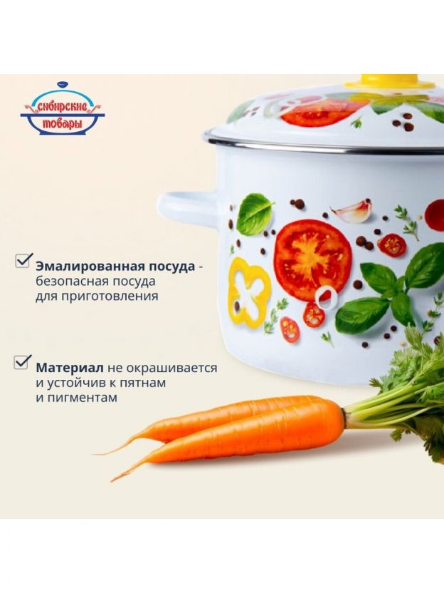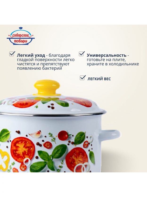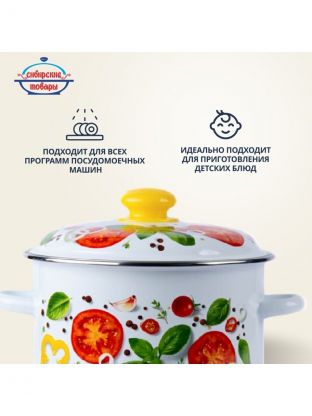 Кастрюля эмалированная сталь 2 л Сибирские товары Каприче — это практичный выбор для ежедневного приготовления супов, каш, макарон, пюре и пельменей. Благодаря цилиндрической форме и плоскому дну кастрюля быстро и равномерно нагревается на всех типах плит, в том числе индукционных. Белое эмалевое покрытие устойчиво к царапинам и легко очищается даже после сложных блюд, что особенно важно для семей с детьми или для дачи.