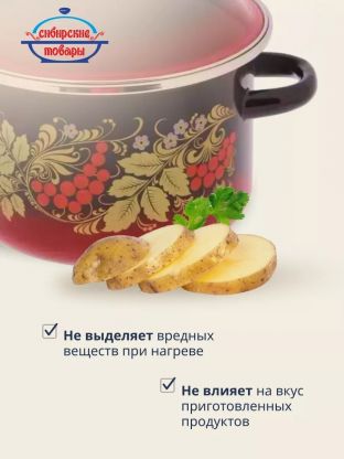 Эмалированная кастрюля объёмом 2 литра из коллекции «Сибирские товары Рябинушка» — это оптимальный выбор, если вы ищете, какую кастрюлю купить для индукционной плиты или универсальную посуду для разных типов плит. Благодаря цилиндрической форме и плоскому дну (толщина 0,8 мм), кастрюля равномерно прогревает суп, кашу, макароны или пельмени. Стальное основание с эмалированным покрытием гарантирует устойчивость к царапинам и коррозии, а отсутствие антипригарного слоя делает изделие безопасным для здоровья.