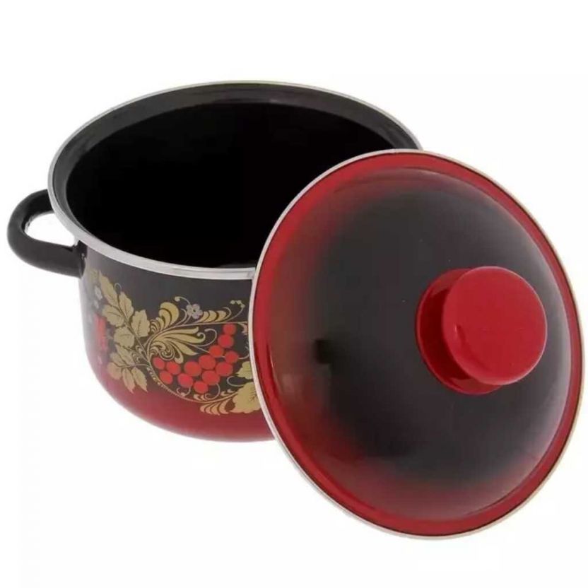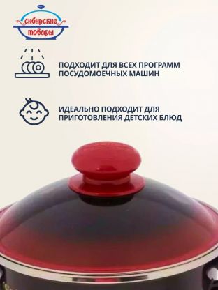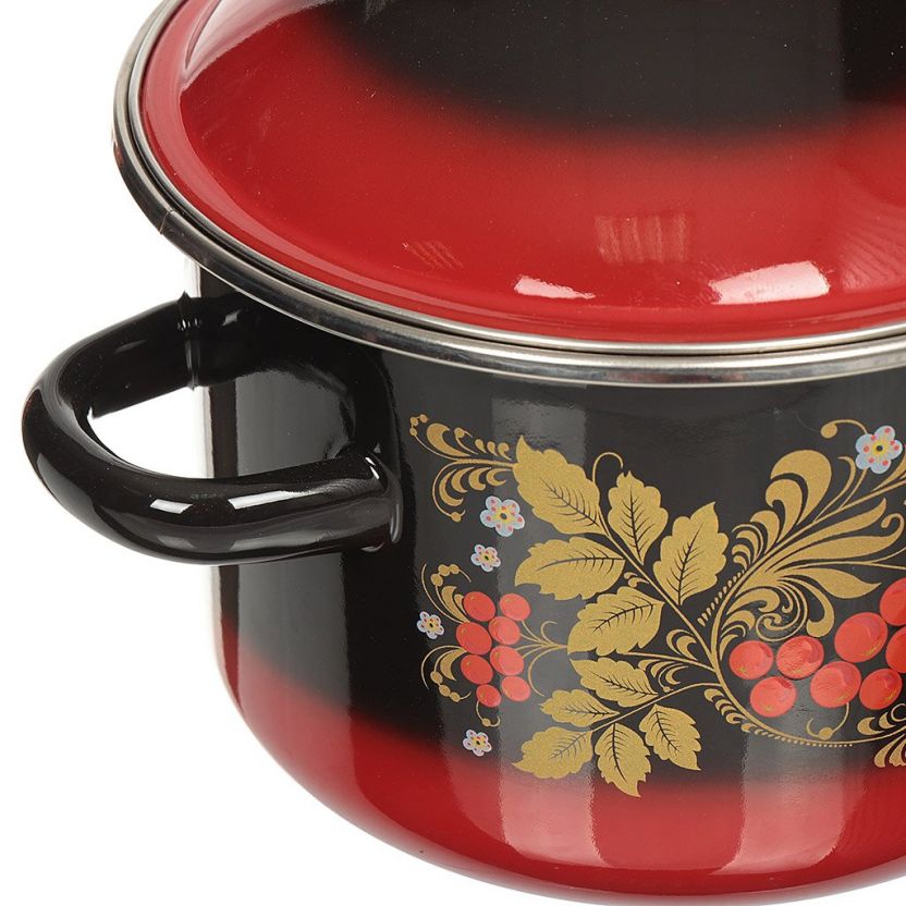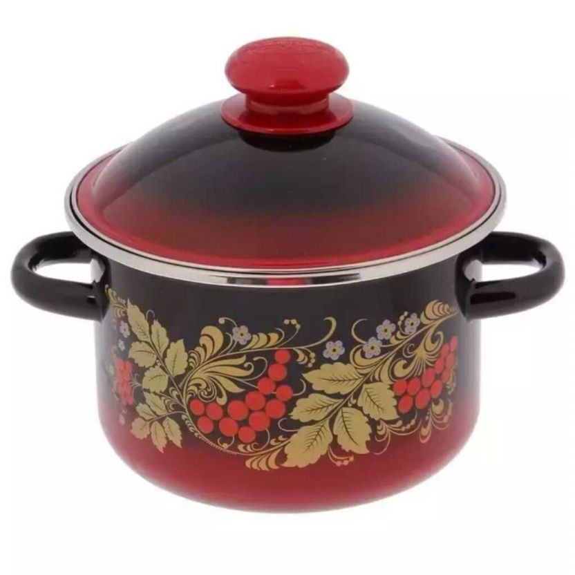 Кастрюля эмалированная сталь, 2 л, крышка сталь, цилиндрическая, Сибирские товары, Рябинушка, 7MD161M, индукция