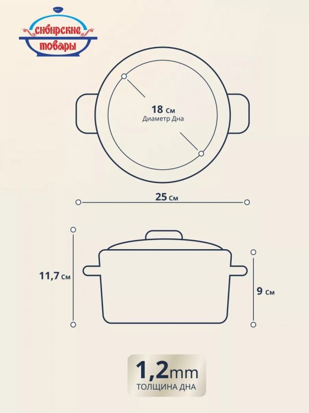 Объём кастрюли — 2 литра. Подходит для приготовления супа, каши, пюре, макарон, пельменей. Оптимальный размер для семьи из 2–3 человек.