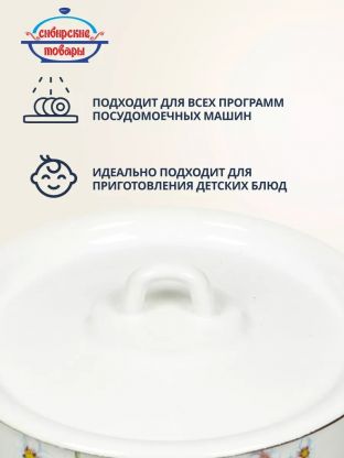 Кастрюля эмалированная сталь, 2 л, крышка сталь, цилиндрическая, Сибирские товары, С1610.П*59/*78/*44/*59/С, в ассортименте