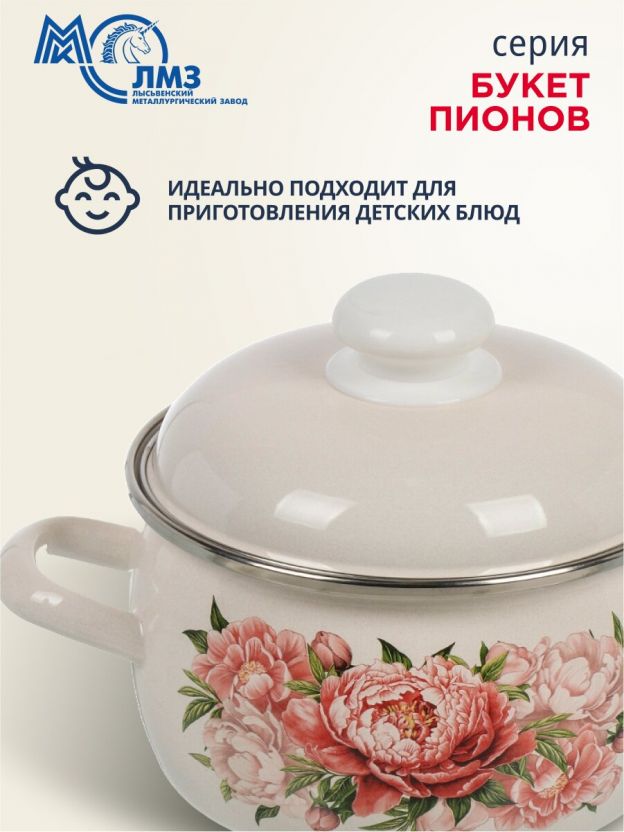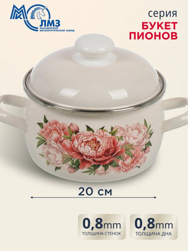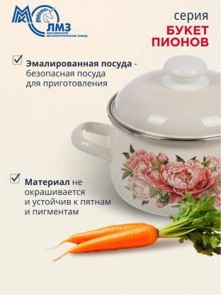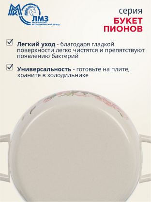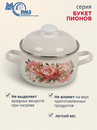 Кастрюля эмалированная ЛЗЭП «Букет пионов», 2 л: универсальное решение для индукционных плит и стильной кухни. Удобно, долговечно, выгодно!