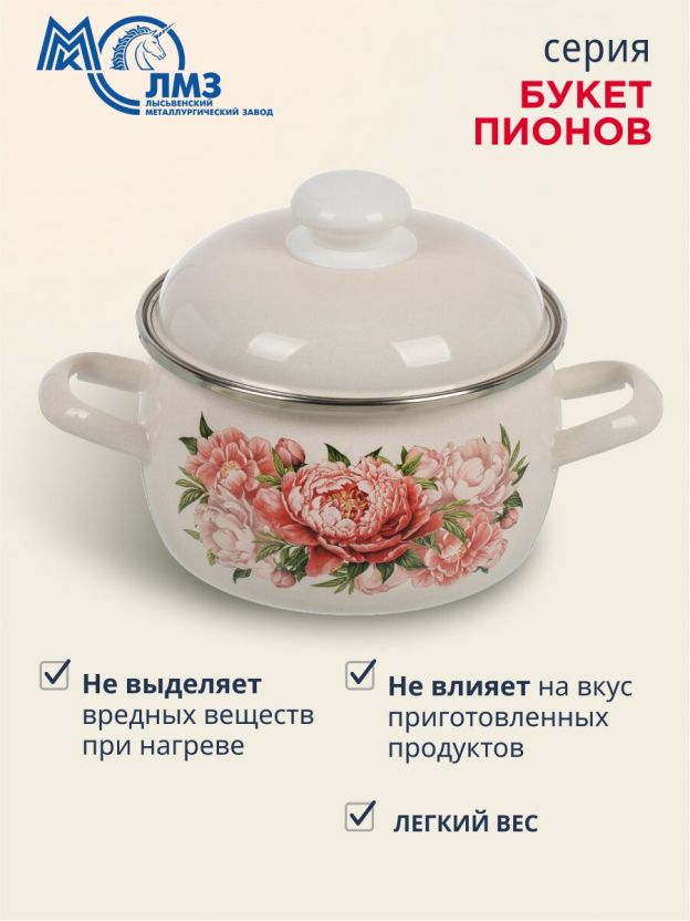 Оформите заказ на эмалированную кастрюлю ЛЗЭП «Букет пионов» — получите стильную посуду с гарантией, быстрой доставкой и выгодной ценой. Успейте купить для себя или в подарок!