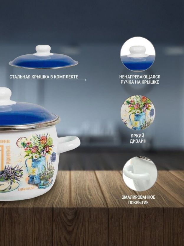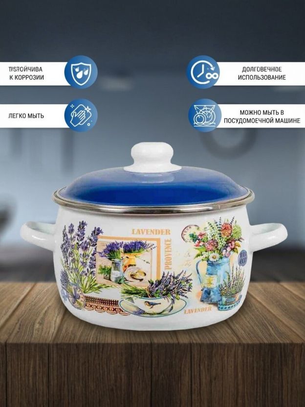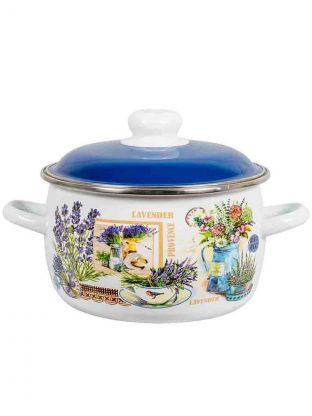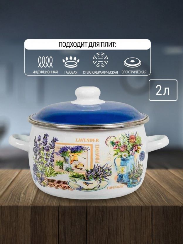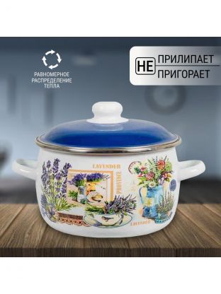 Кастрюля эмалированная СтальЭмаль 2 л «Горная лаванда»: долговечная сталь, сферическая форма, подходит для индукции и посудомойки — идеальный выбор для дома и дачи.