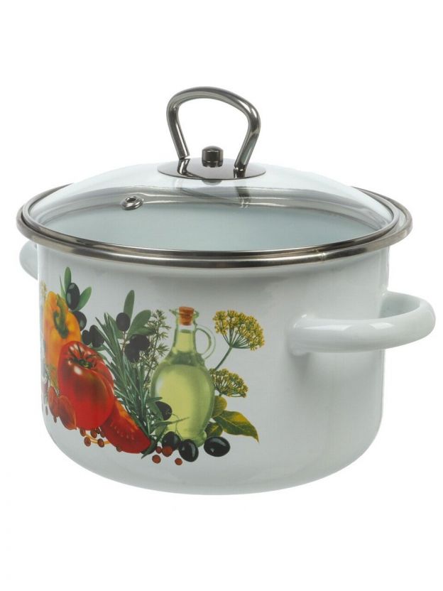 - Экологичная эмалированная сталь, объём 2 л, стеклянная крышка с клапаном, гарантия 24 месяца