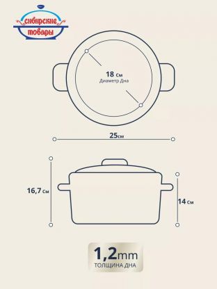 - Оптимальный объём 3.5 л, диаметр 18 см, подходит для большинства блюд и плит