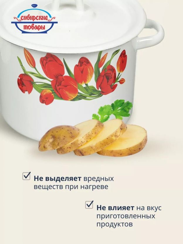 Если вы спрашиваете, какую кастрюлю выбрать для дачи или частого использования, этот вариант сочетает в себе универсальность и долговечность. В отличие от алюминиевых аналогов, эмалированная сталь не вступает в реакцию с продуктами, не впитывает запахи и сохраняет вкус блюд. Модель «Тюльпаны/Маки» устойчива к сколам, а крышка из стали плотно прилегает, сохраняя тепло. Кастрюля не подходит для индукционных плит, но отлично работает на газовых, электрических и стеклокерамических.