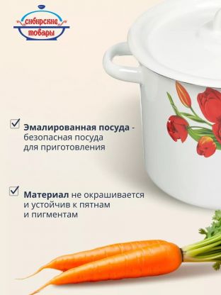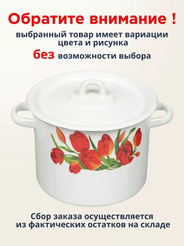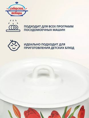 Эмалированная кастрюля 3.5 л «Тюльпаны/Маки» — стильный выбор для кухни: долговечная сталь, легко мыть, идеальна для супов, каш и пельменей.