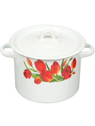Кастрюля эмалированная сталь, 3.5 л, крышка сталь, цилиндрическая, Сибирские товары, Тюльпаны/Маки, С1612*78/*67/.3*78/3*119