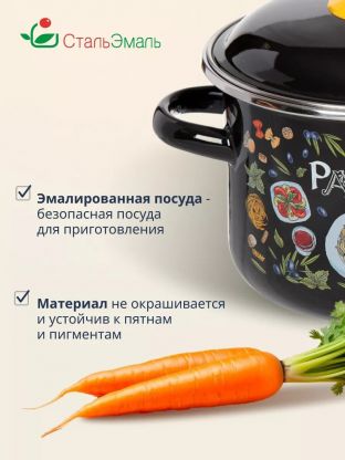 Кастрюля эмалированная СтальЭмаль 3 л для индукции: универсальное решение для дома и дачи, долговечная сталь, подходит для любых плит.