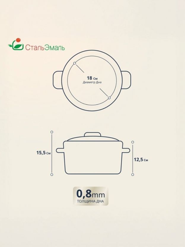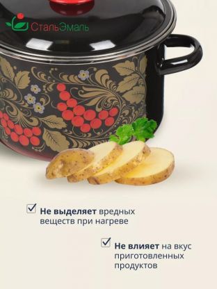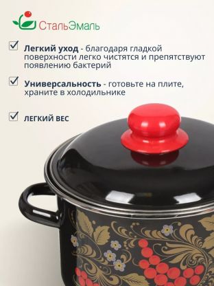Кастрюля эмалированная СтальЭмаль Рябина 3 л — универсальное решение для здорового приготовления на индукции, газу и электроплите. Легко мыть, не впитывает запахи, подходит для дома и дачи.