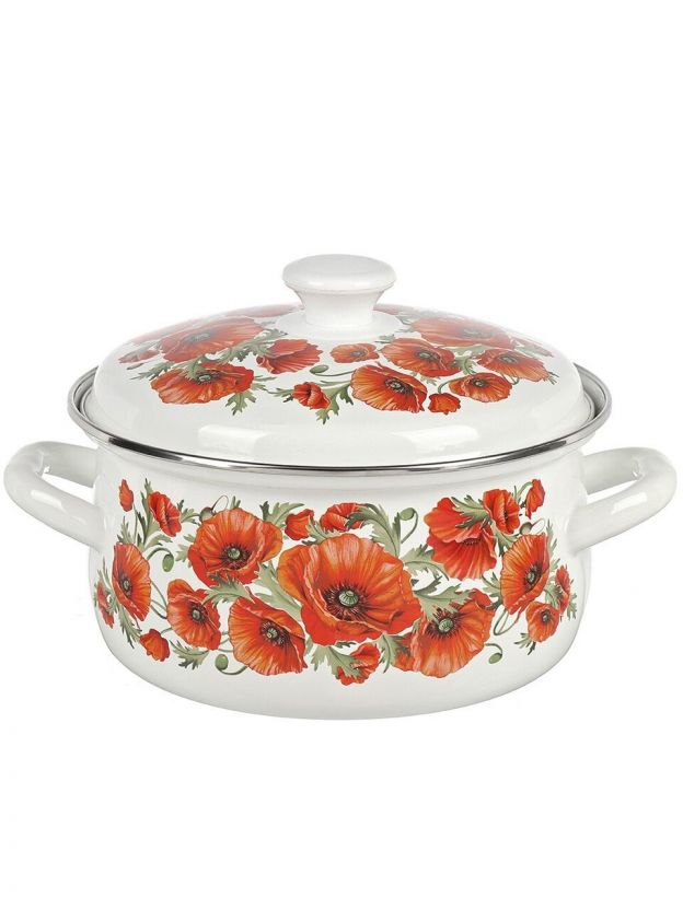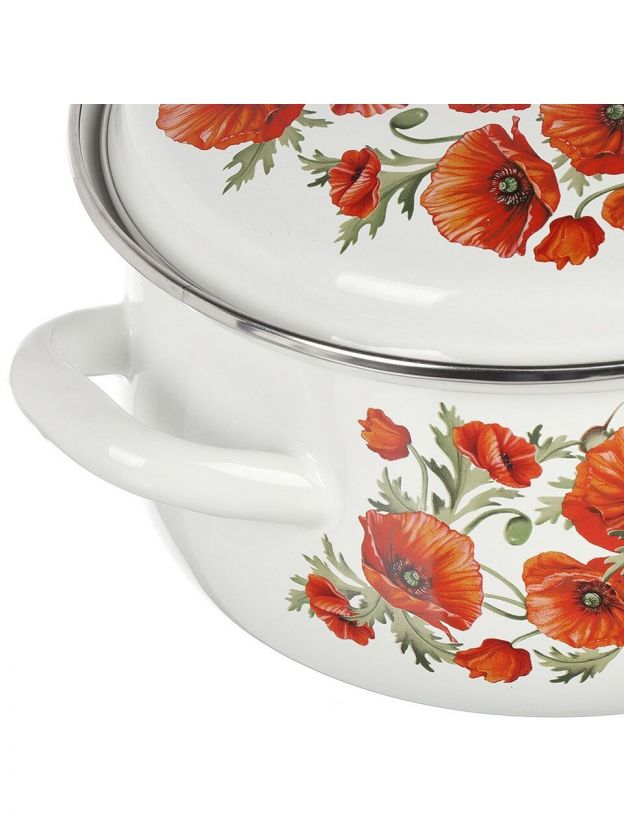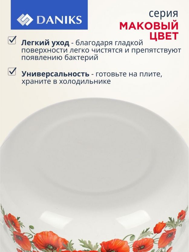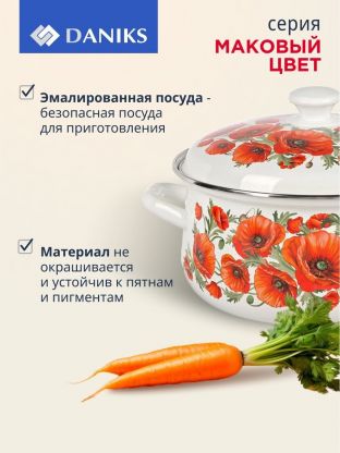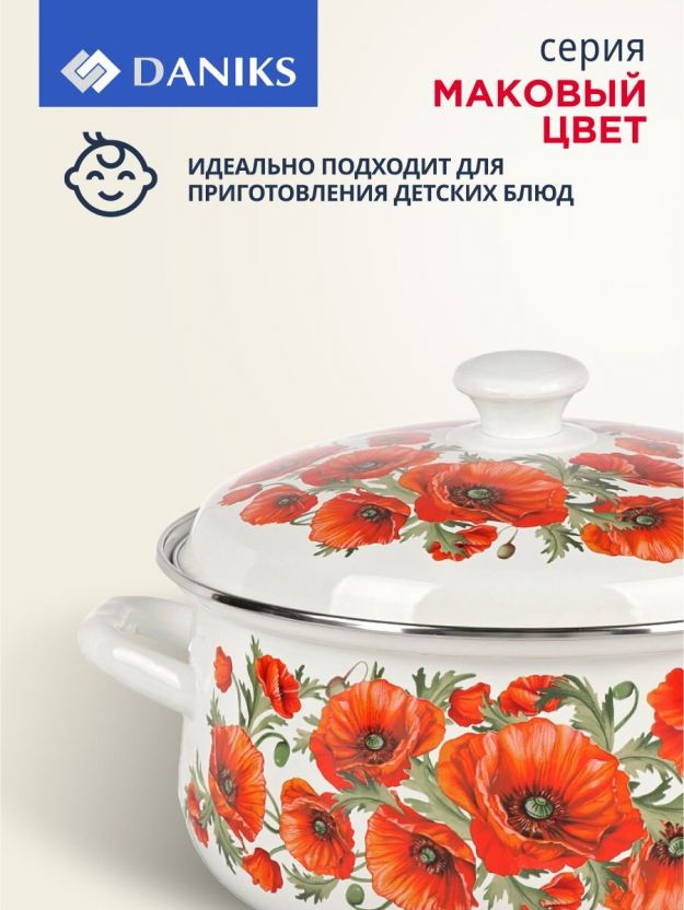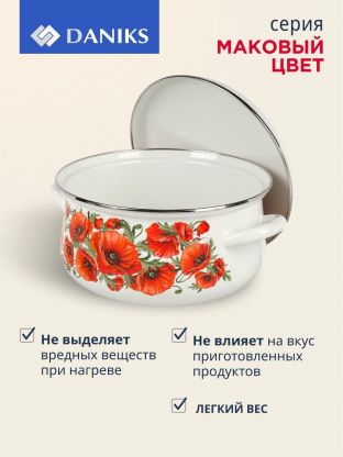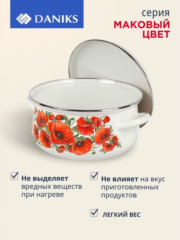 Кастрюля эмалированная Daniks «Маковый цвет»: долговечная стальная посуда 3 л для уютной кухни, идеальна для дома и дачи. Прочная, стильная, легко мыть!