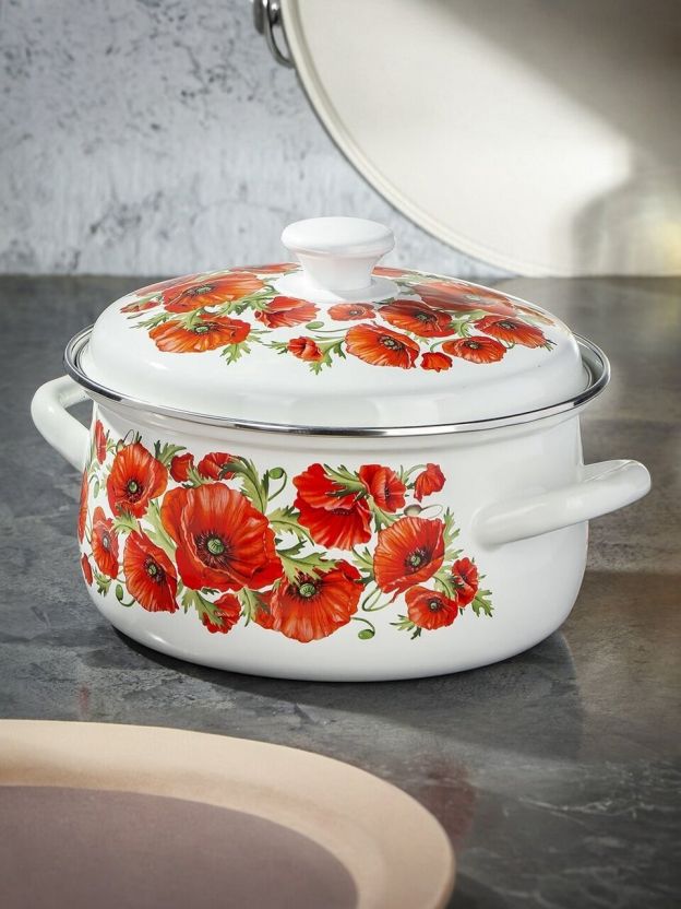Для тех, кто ищет, какую кастрюлю купить для подарка или в дом, эта модель станет универсальным решением. Она совместима с большинством плит (кроме индукционных), легко моется в посудомоечной машине, а яркий дизайн «Маковый цвет» украсит любую кухню. Если вы выбираете между вариантами с антипригарным покрытием и эмалью — эмалированная поверхность безопаснее для здоровья и не требует специальных лопаток.
