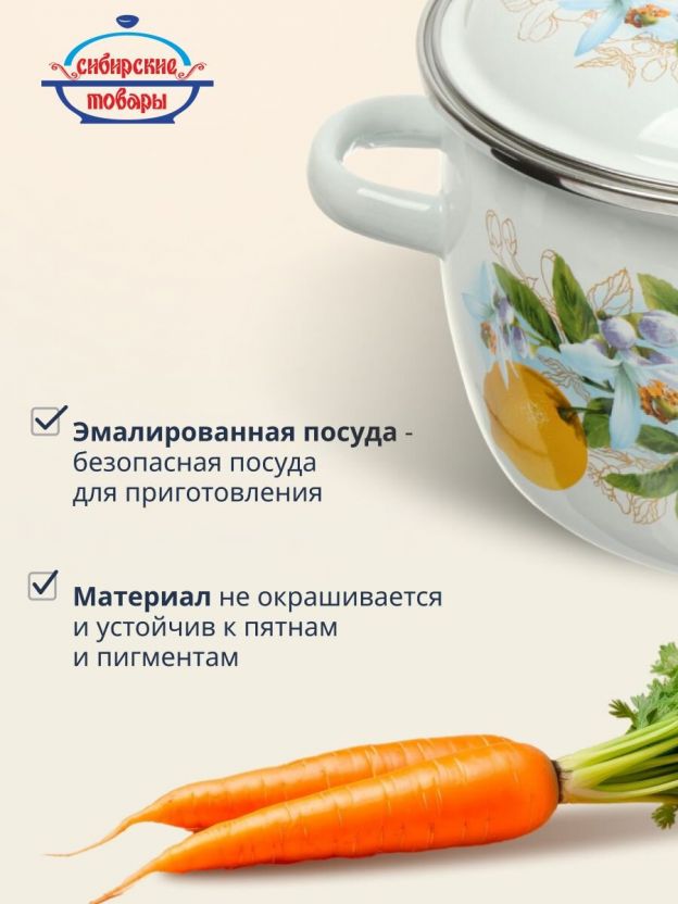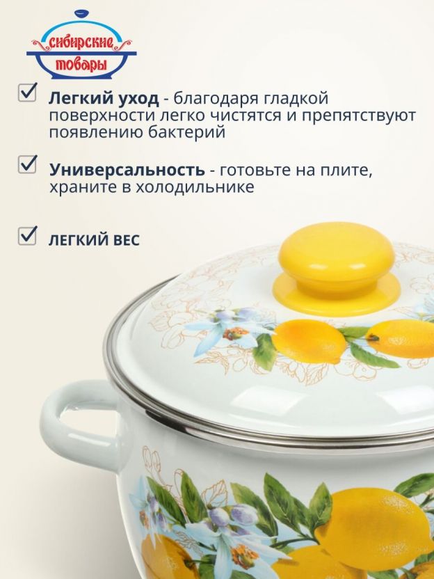 Эмалированная кастрюля «Сибирские товары Лимоны» — это надежная посуда для ежедневного и сезонного использования. Сферическая форма обеспечивает равномерное распределение тепла, а эмалированное покрытие защищает от пригорания и впитывания запахов. Многие спрашивают: «Как выбрать кастрюлю для индукционной плиты?» — эта модель совместима с индукцией, газом, электричеством и стеклокерамикой, что делает ее универсальной для любой кухни.
