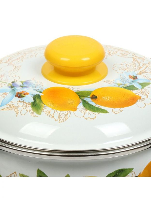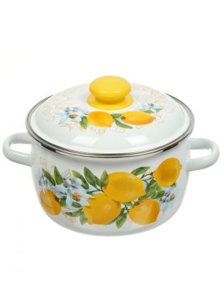 Кастрюля эмалированная сталь, 3 л, крышка сталь, сферический, Сибирские товары, Лимоны, 3MC181P, индукция
