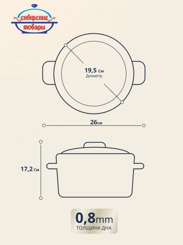 Диаметр 19 см, объем 3 литра. Высота с крышкой — 17,2 см, без крышки — 12,3 см. Этого достаточно для семьи из 2–4 человек.