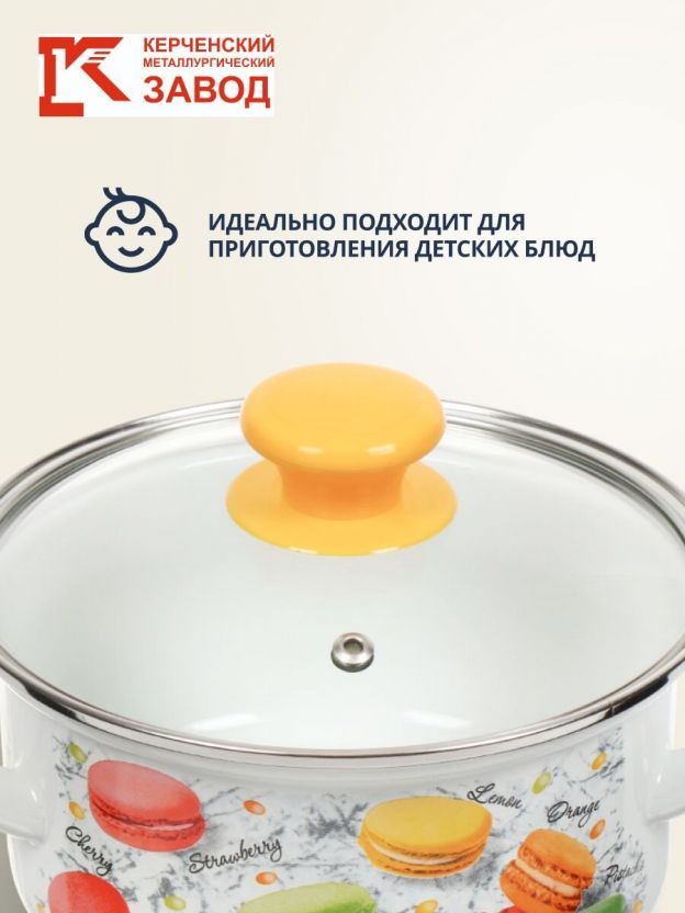Кастрюля эмалированная сталь 3 л с крышкой из стекла — идеальный выбор для семьи: долговечность, удобство, стильный дизайн «Цветное печенье».