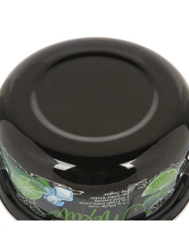 - Сферическая форма и эмалированная сталь — устойчивость к сколам, легкость ухода, оригинальный декор “Мохито”.
