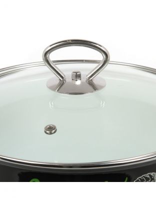 - Объем 3 л, диаметр 20 см, стеклянная крышка с выпускным клапаном — безопасное приготовление, оптимально для семьи.