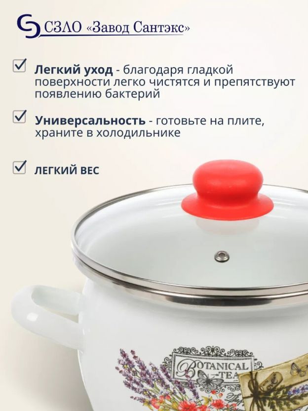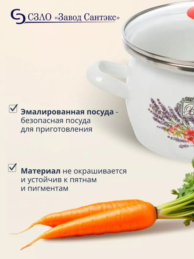 Эмалированная кастрюля Сантэкс Прованс 3 л с крышкой: универсальное решение для индукционных и газовых плит. Идеально для супа, каши, макарон. Гарантия 24 месяца!