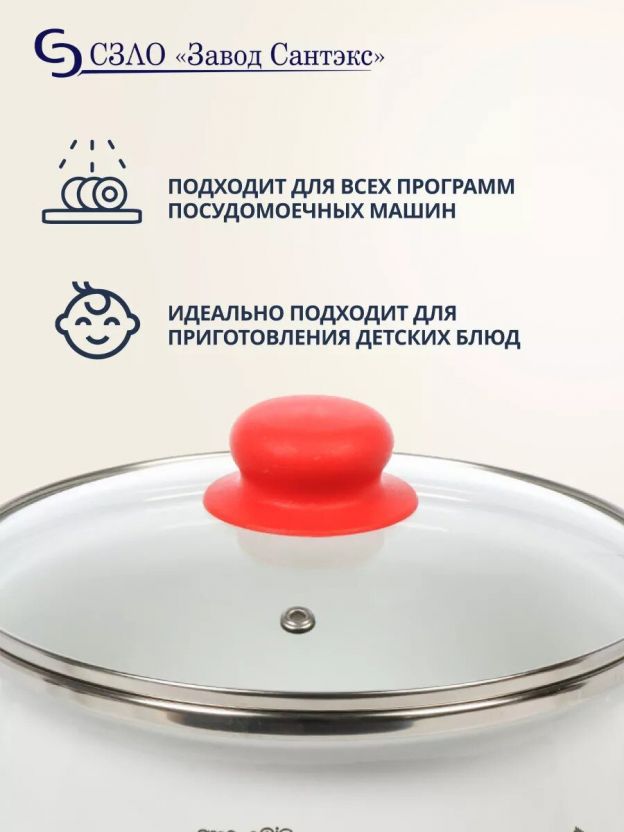 Как использовать кастрюлю Сантэкс Прованс? Просто налейте воду, загрузите продукты, закройте крышкой — благодаря выпускному клапану пар выходит равномерно, а блюда не убегают. Мытьё в посудомоечной машине экономит время, а белый цвет и стильный дизайн украсят любую кухню.