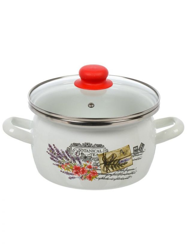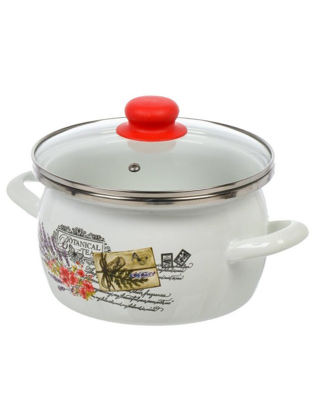Кастрюля эмалированная сталь, 3 л, крышка стекло, сферический, Сантэкс, Прованс, 1-2430112, индукция