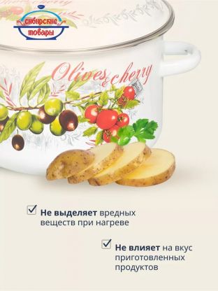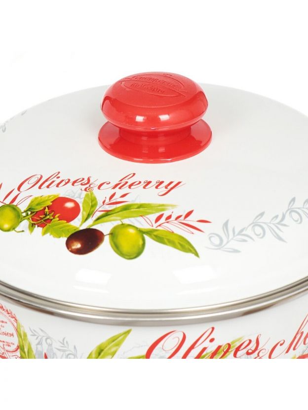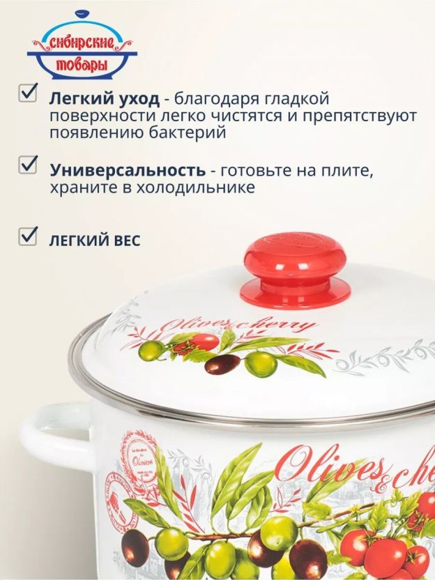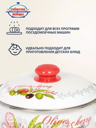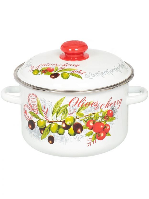 Кастрюля эмалированная сталь, 4 л, крышка сталь, цилиндрическая, Сибирские товары, Оливки и черри, 3MD201M, индукция