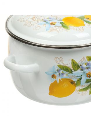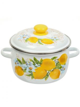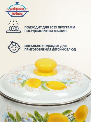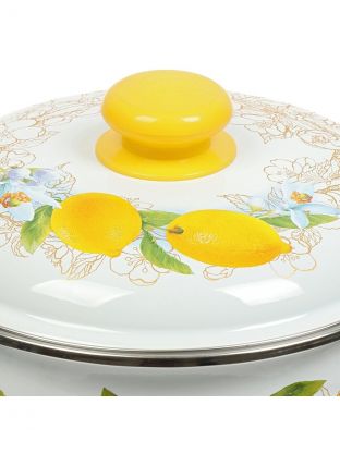 Кастрюля эмалированная сталь, 4 л, крышка сталь, сферический, Сибирские товары, Лимоны, 3MC201P, индукция