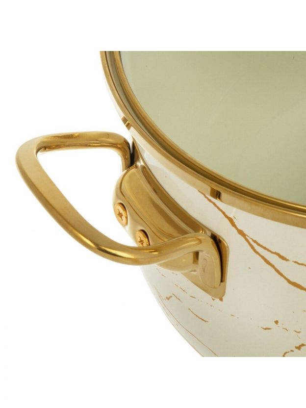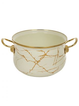 Кастрюля эмалированная сталь, 4 л, крышка стекло, Daniks, Белый мрамор, Y4-8965, индукция