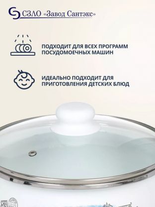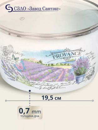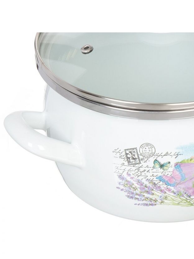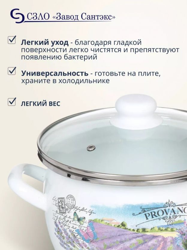 Кастрюля эмалированная Сантэкс Лаванда 4 л с крышкой из стекла — стильный выбор для индукции и любых плит. Удобство, долговечность, дизайн под лаванду.
