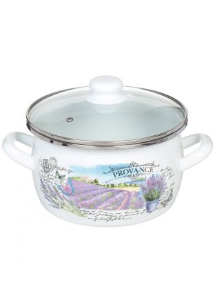 Кастрюля эмалированная сталь, 4 л, крышка стекло, сферический, Сантэкс, Лаванда, 1-2440112, индукция