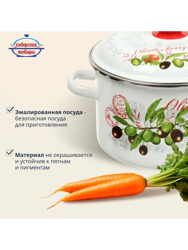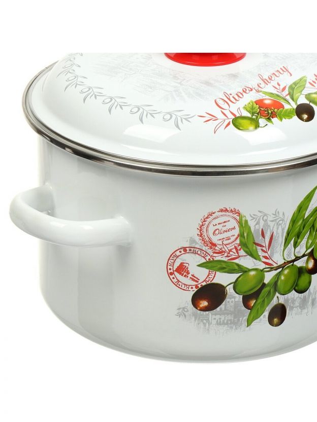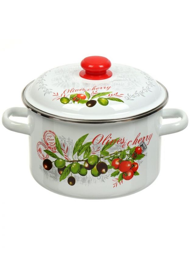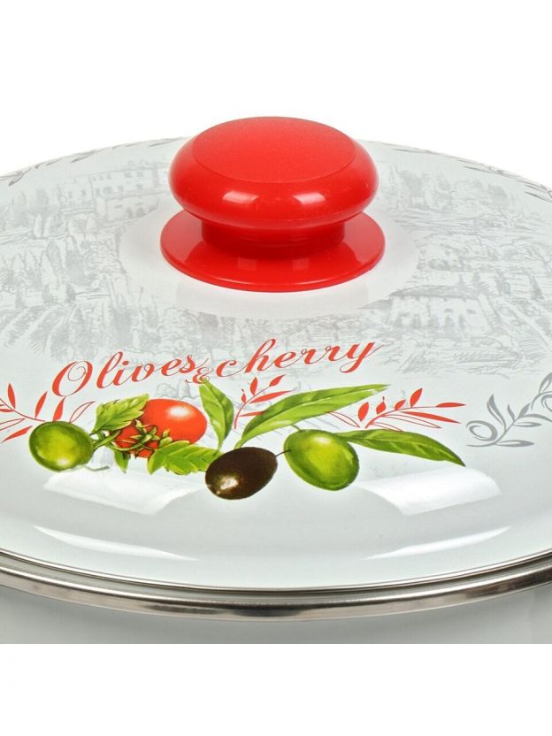 Кастрюля эмалированная 5.5 л для индукции: долговечная сталь, универсальный размер, дизайн «Оливки и черри» — выгодно для дома и дачи.