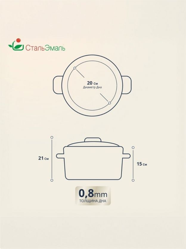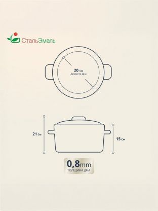 В отличие от алюминиевых или дешёвых стальных кастрюль, эмалированная сталь не выделяет вредных веществ при нагреве и не меняет вкус продуктов. Часто спрашивают, подходит ли кастрюля для дачи или подарка — цилиндрическая форма и универсальный дизайн делают её практичным выбором для любой кухни. Толщина дна 0.8 мм обеспечивает равномерный прогрев, а стальная крышка сохраняет тепло и аромат готовых блюд.