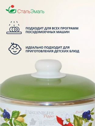 Кастрюля эмалированная СтальЭмаль Авокадо 5.5 л: долговечная сталь, подходит для индукции и посудомоечной машины. Лучший выбор для семьи и дачи.