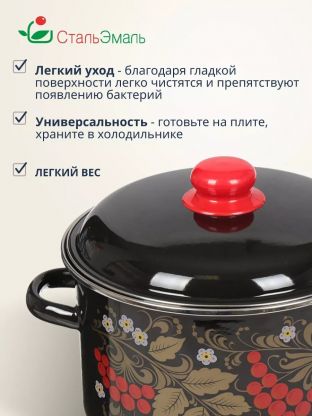 Закажите кастрюлю СтальЭмаль Рябина с выгодой — получите надежную посуду для любых блюд с гарантией производителя и быстрой доставкой.