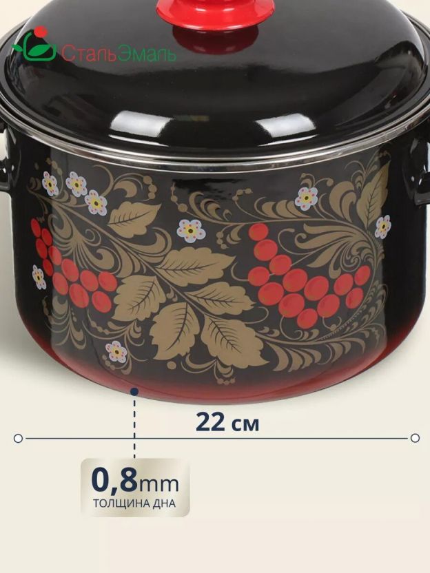 Эмалированная кастрюля СтальЭмаль Рябина 5.5 л для индукции: универсальное решение для кухни, дачи и подарка. Закажите с гарантией 24 месяца.