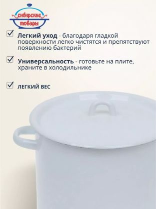 Кастрюля эмалированная сталь 5.5 л Сибирские товары — универсальное решение для кухни и дачи: долговечность, стиль и практичность по доступной цене.