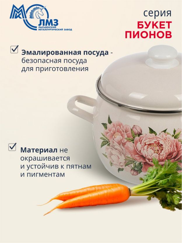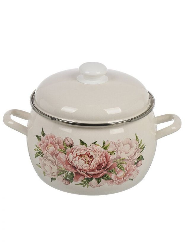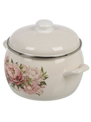 Кастрюля эмалированная сталь, 5 л, крышка сталь, полусфера, ЛЗЭП, Букет пионов, С-4216АП2/4Жм, индукция