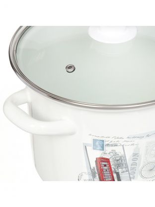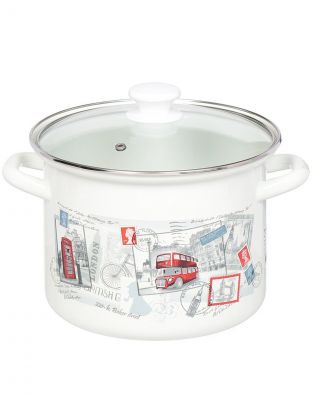Кастрюля эмалированная сталь, 5 л, крышка стекло, цилиндрическая, Керченский металлургический завод, 42304-162/4.02-У4, в ассортименте