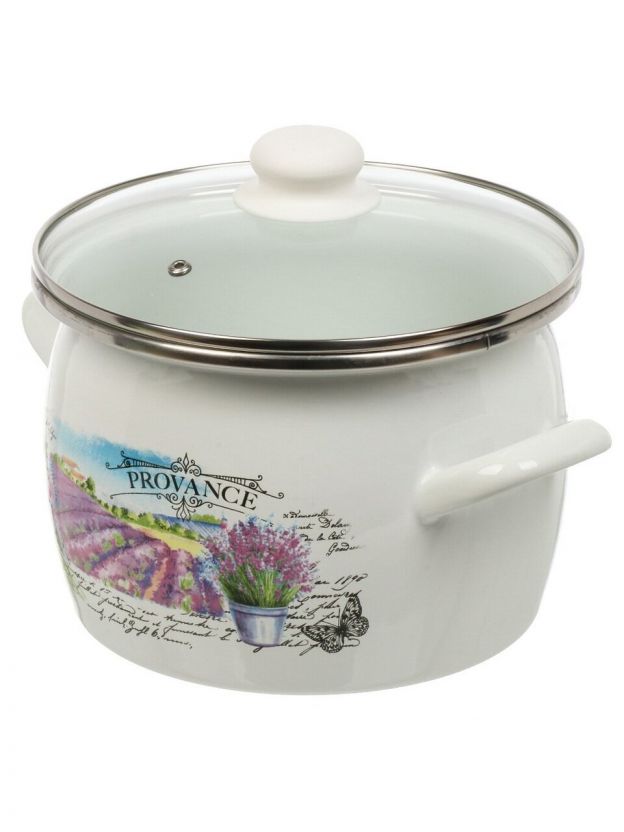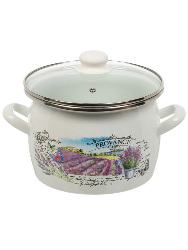 Кастрюля эмалированная сталь, 5 л, крышка стекло, сферический, Сантэкс, Лаванда, 1-2450112, индукция