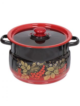 Кастрюля эмалированная сталь, 8 л, крышка сталь, сферический, Сибирские товары, С1920.38, красно-черная