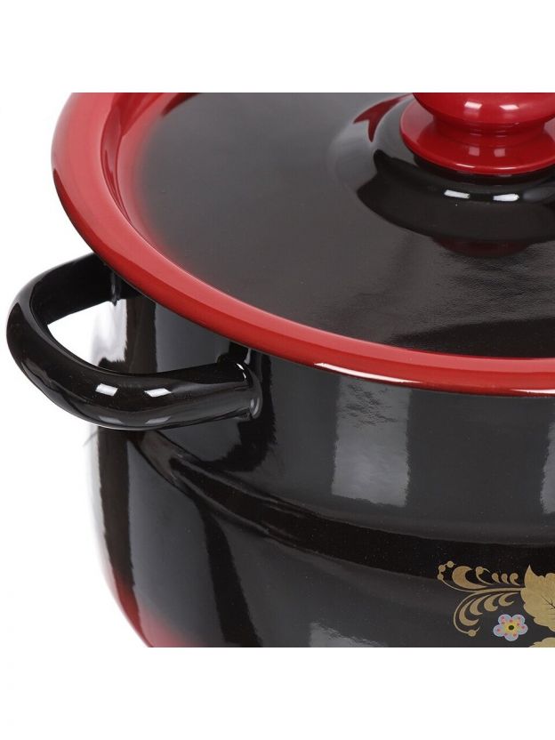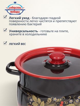 • Эмалированная сталь устойчива к коррозии и не вступает в реакцию с продуктами — подходит для варки компота, каши, пюре.