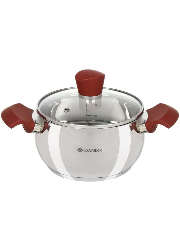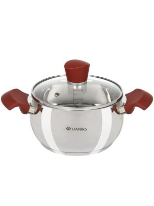 Кастрюля нержавеющая сталь, 1.9 л, крышка стекло, Daniks, Орлея, GS-01159P-16CA, индукция
