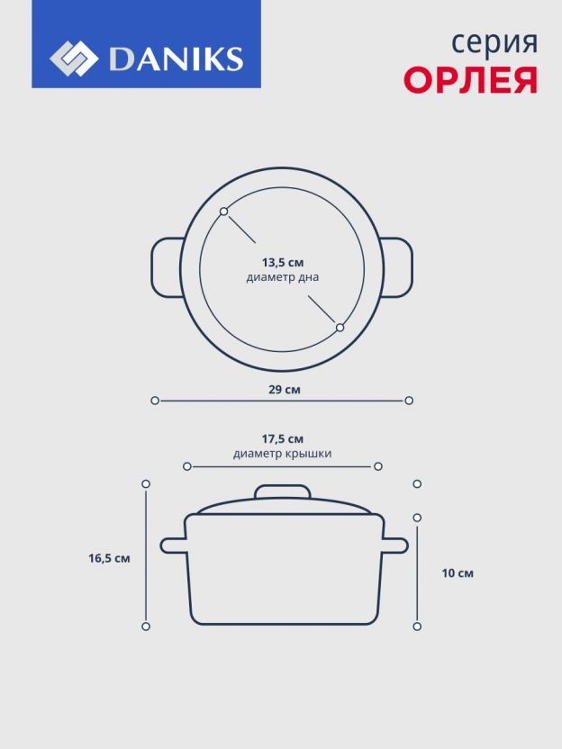 Покупатели часто спрашивают: «Как выбрать кастрюлю для дачи или небольшой семьи?» — этот объём (1.9 л) идеально подходит для 2-3 человек, а компактный диаметр 16 см экономит место на плите и в шкафу. В отличие от аналогов без капсульного дна, модель Daniks Орлея быстрее нагревается и дольше сохраняет тепло, что помогает экономить энергию. Не содержит антипригарного и эмалированного покрытия — безопасна при длительном использовании, легко моется в посудомоечной машине.