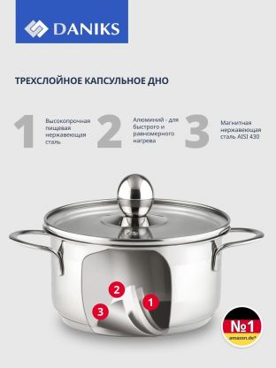 Оформите заказ онлайн — купить недорого кастрюлю из нержавеющей стали для дачи, дома или подарка можно с быстрой доставкой. Качественная посуда Daniks — уверенность в каждом блюде.